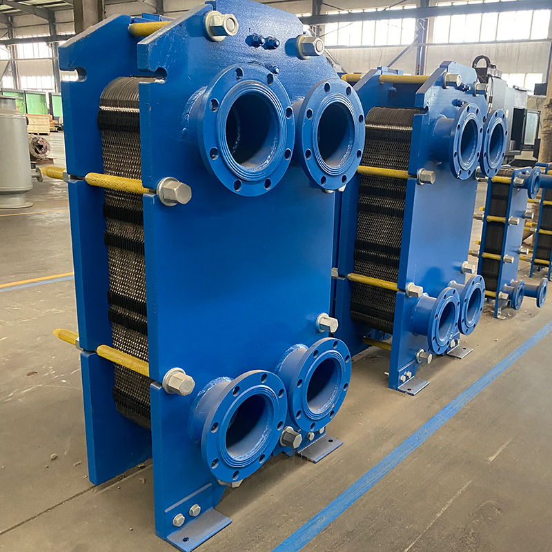 板式换热器可拆卸板式换热器是由许多冲压有波纹薄板按一定间隔,四周通过垫片密封,并用框架和压紧螺旋重叠压紧而成,板片和垫片的四个角孔形成了流体的分配管和汇集管,同时又合理地将冷热流体分开,使其分别在每块板片两侧的流道中流动,通过板片进行热交换。板式换热器具有传热系数高、压降小、结构紧凑、质量轻、占用空间小、面积和流程组合方便、零件通用性强、可选择材料广以及容易实现规模化生产等特点,已被广泛应用于食品、机械、冶金、石油化工和船舶等领域,并成为城市集中供热工程中的主导换热设备。为了保证板式换热器的正常运行,延长关键部件(如板片、胶垫)的使用寿命,了解掌握板式换热器出现的故障及其产生原因和处理方法显得尤为重要。