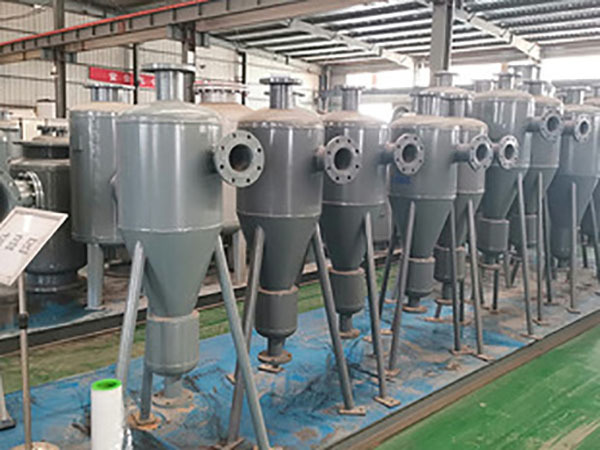 旋流除砂器选型须考虑处理水量,外部接管管径,管道工作压力,原水品质以及处理后水质要求等因素。一般情况下,选用旋流除砂器时,在满足流量的前提下,优先选用大的型号设备,并推荐在系统中用几台设备并联替代大设备,以便取得更佳的固液分离效果。