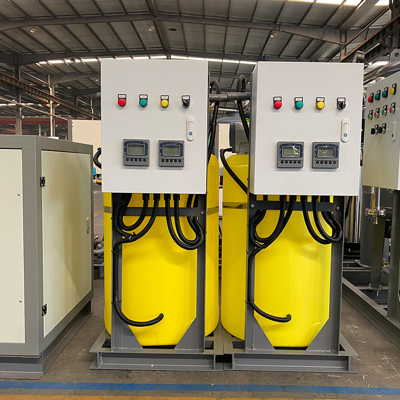 一体化加药装置,是集药剂制备与投配于一体的投药装置,由溶液搅拌桶、药剂输送泵、计量设备及操作平台组成,可向重力管道或压力管道内(如管道混合器)投药。