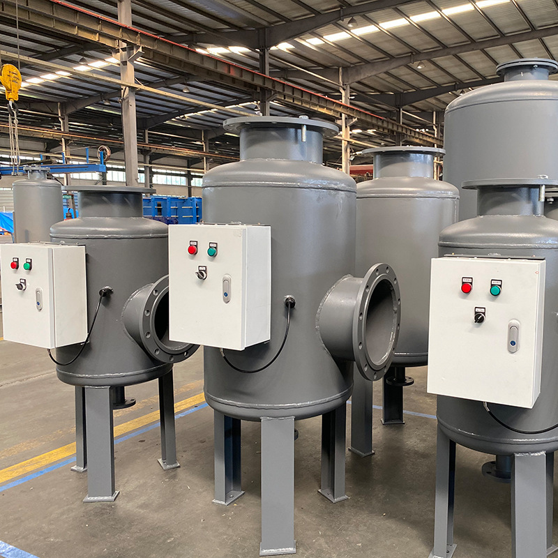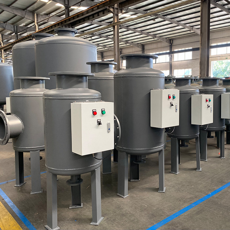 全程综合水处理器主要由优质碳钢筒体、特殊结构的不锈钢网、高频电磁场发生器、电晕场发生器及排污装置等组成。通过活性铁质滤膜,全自动机械过滤器变径孔阻挡及电晕效应场三位一体的综合过滤体,吸附、浓缩在实际运行工况下各种水系统形成的硬度物质及复合垢,降低其浓度,达到控制污垢及大部分硬度垢的目的。并通过换能器将特定频率能量转换给被处理的介质——水,形成电磁极化水,使其成垢离子间的排列顺序位置发生扭曲变形,当水温升高到一定程度时,处理的水需经过一段时间方能恢复到原来的状态。在此阶段,成垢的机率很底,因而达到控制形成硬度垢的目的。同时器壁金属离子受到抑制,对无垢系统具有防腐蚀作用。此外,电磁极化水还可有效地杀灭水中的菌类、澡类等,有效地抑制水中微生物的繁殖。所以,全程综合水处理器在系统正常运行状态下,可以完成防结垢、防腐,杀菌,灭藻,超净过滤,控制水质的综合功能。